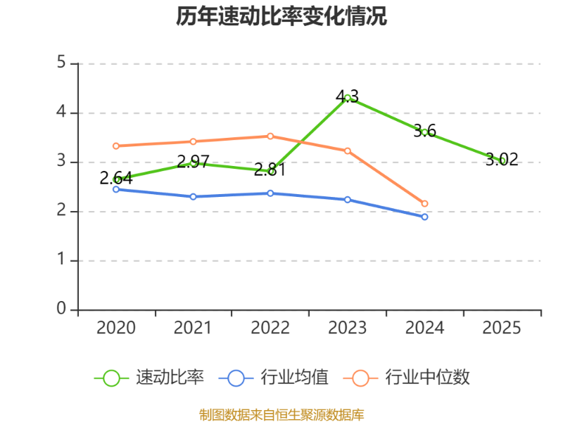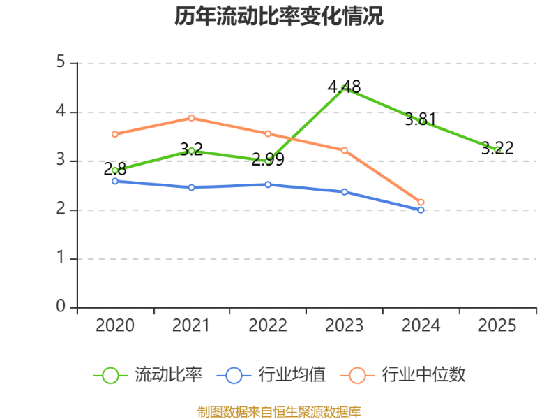 2025年,公司流动比率为3.22,速动比率为3.02。