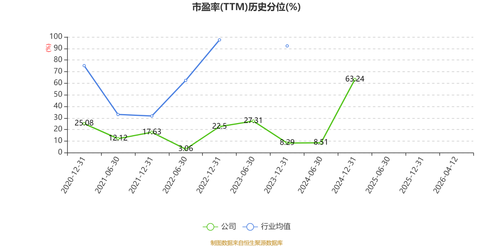 市盈率、市净率为负时,不显示当期分位数,会导致折线图中断。