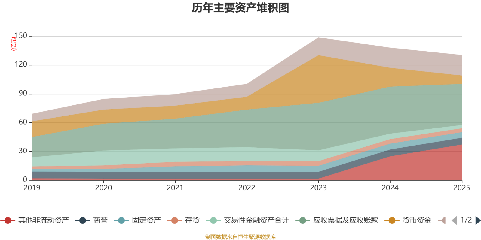 资产重大变化方面,截至2025年末,公司其他非流动资产较上年末增加49.7%,占公司总资产比重上升10.49个百分点;货币资金较上年末减少55.45%,占公司总资产比重下降7.53个百分点;应收票据及应收账款较上年末减少12.71%,占公司总资产比重下降2.68个百分点;交易性金融资产合计较上年末减少39.99%,占公司总资产比重下降1.52个百分点。