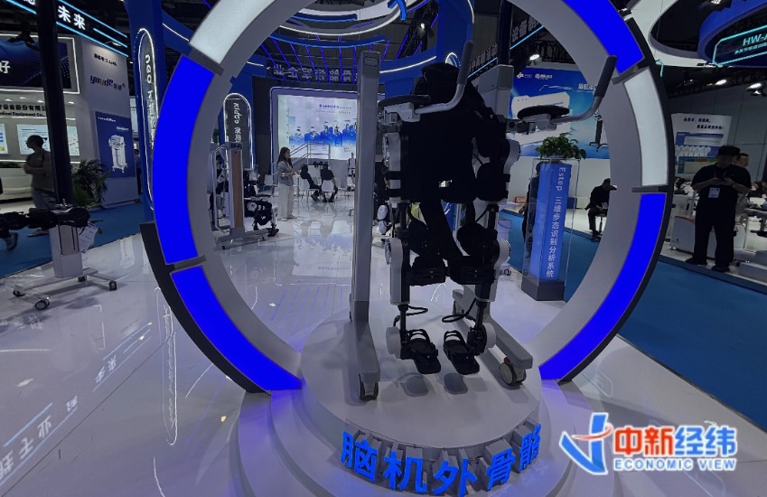 脑机接口外骨骼机器人中新经纬王玉玲摄