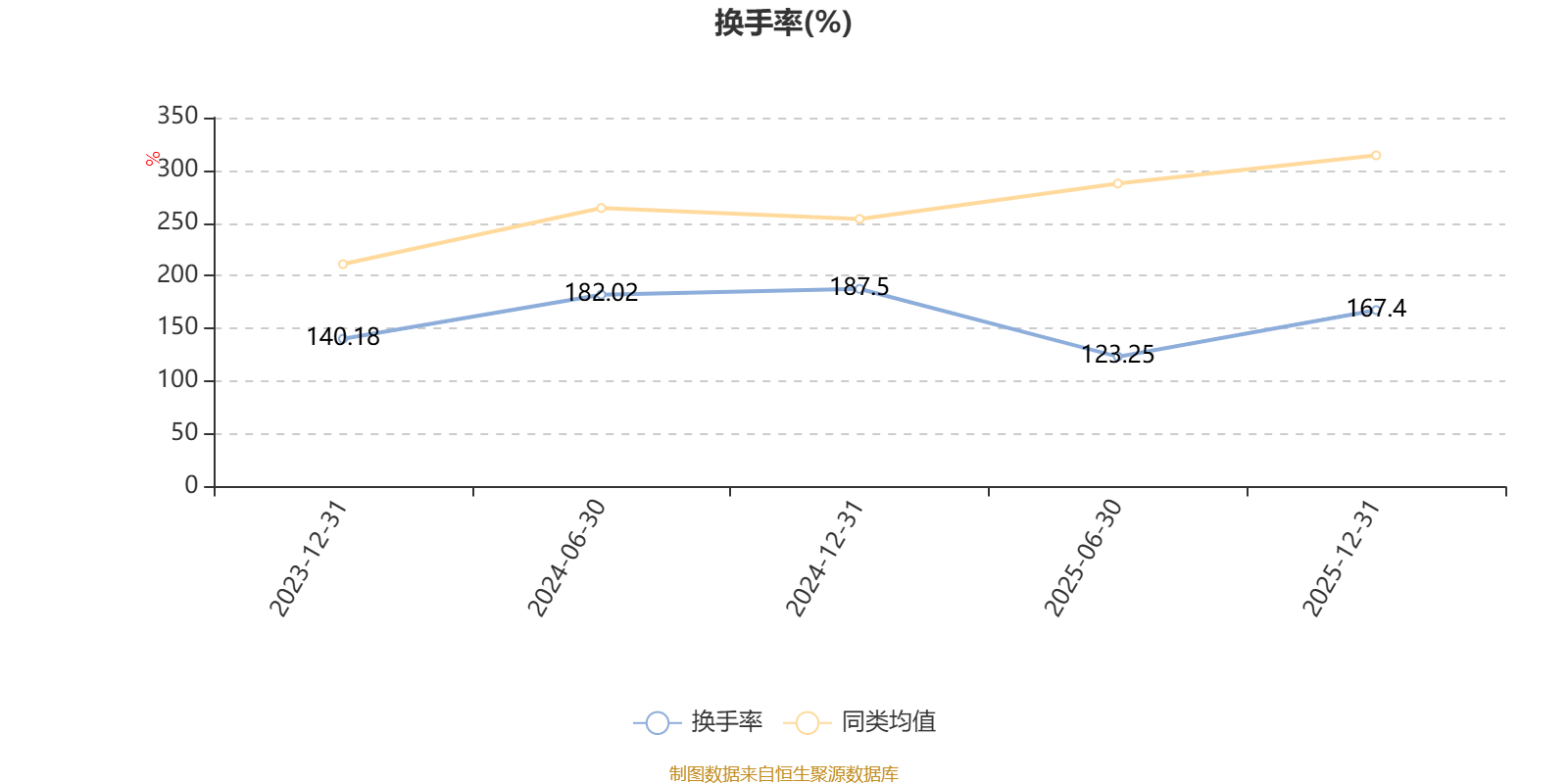 截至2025年12月31日,基金最近一年换手率约294.02%,持续低于同类均值。