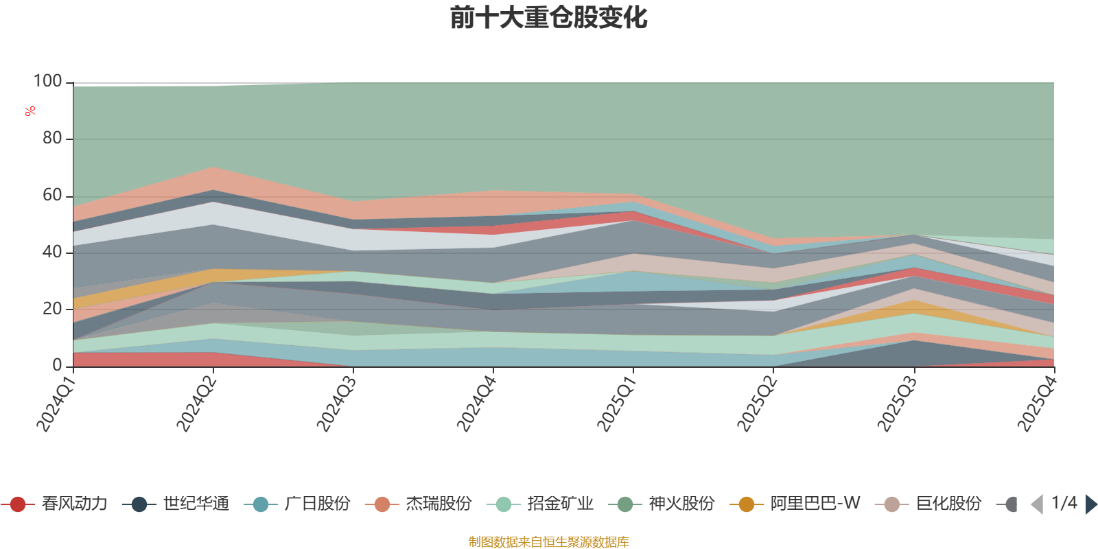 截至2025年末,基金十大重仓股分别是中国宏桥、中国海洋石油、中国黄金国际、巨化股份、吉利汽车、招金矿业、中煤能源、杰瑞股份、徐工机械、春风动力。