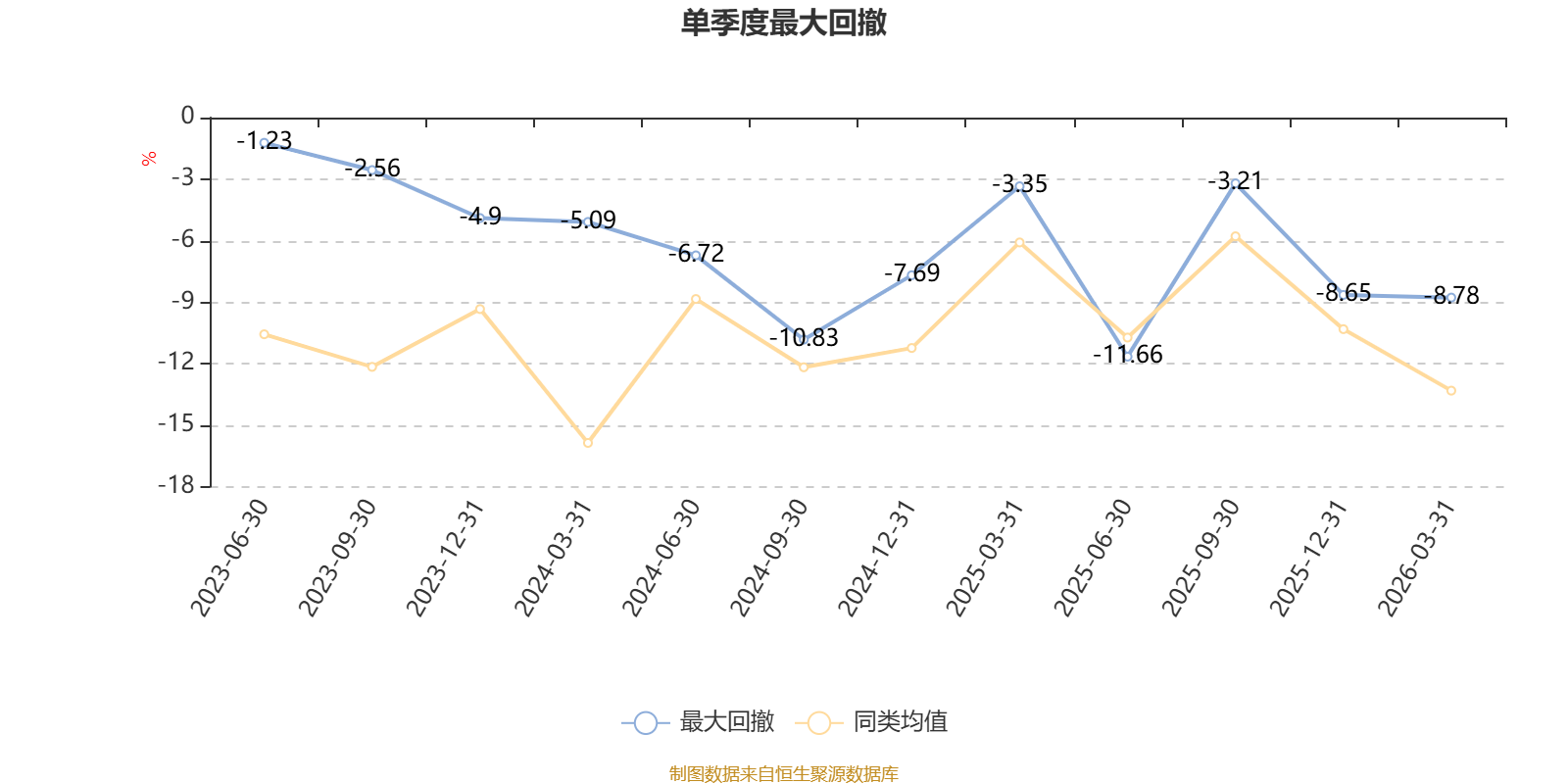 截至4月9日,基金近三年最大回撤为16.06%,同类可比基金排名9/392。单季度最大回撤出现在2025年二季度,为11.66%。