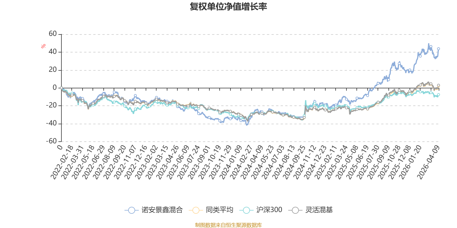 截至4月9日,诺安景鑫混合近三个月复权单位净值增长率为7.10%,位于同类可比基金142/1287;近半年复权单位净值增长率为11.16%,位于同类可比基金212/1286;近一年复权单位净值增长率为73.88%,位于同类可比基金171/1286;近三年复权单位净值增长率为66.03%,位于同类可比基金77/1286。