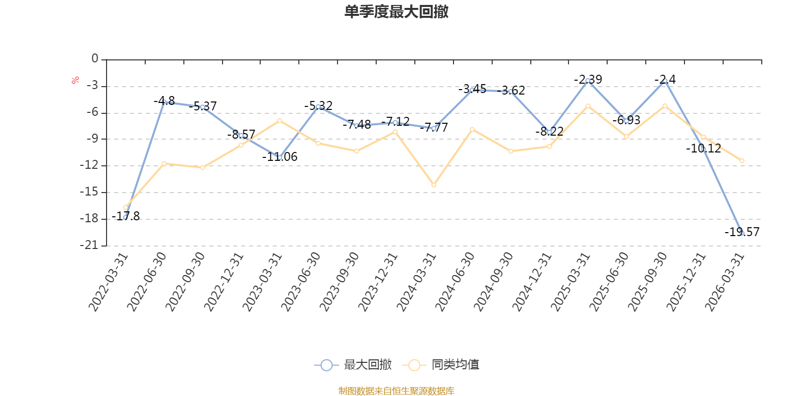 截至4月9日,基金近三年最大回撤为19.57%,同类可比基金排名278/1264。单季度最大回撤出现在2026年一季度,为19.57%。