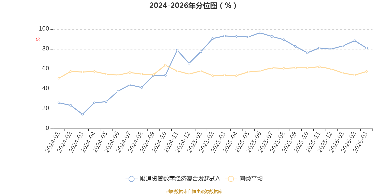 通过所选区间该基金净值增长率分位图,可以观察该基金与同类基金业绩比较情况。图为坐标原点到区间内某时点的净值增长率在同类基金中的分位数。