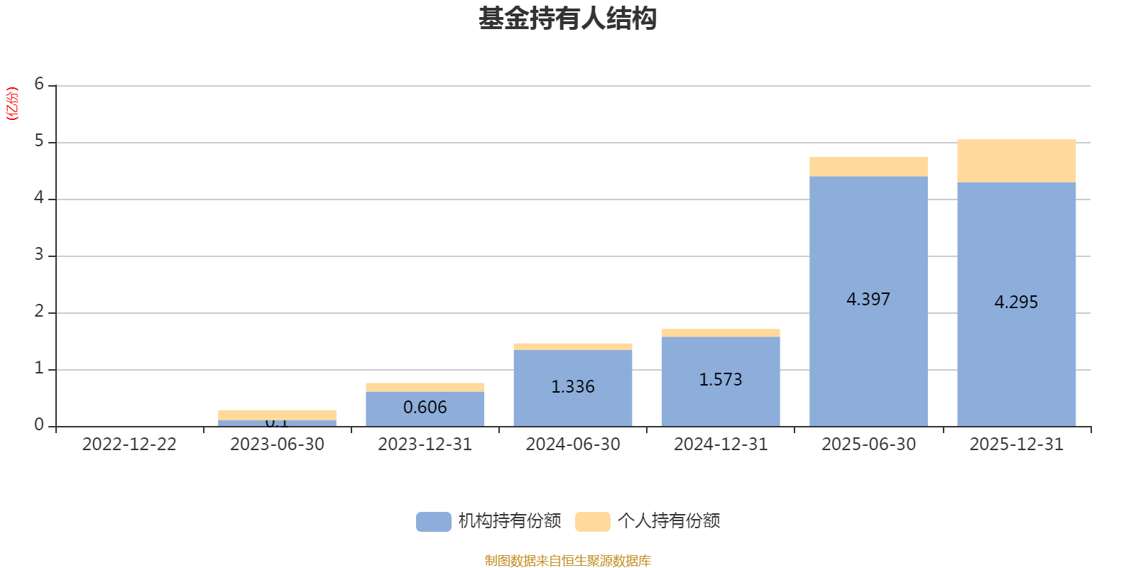 截至2025年12月31日,基金持有人共计1.33万户,合计持有5.05亿份。其中管理人员工持有168.45万份,占比0.33%,机构持有份额占比85.08%,个人投资者占比14.92%。