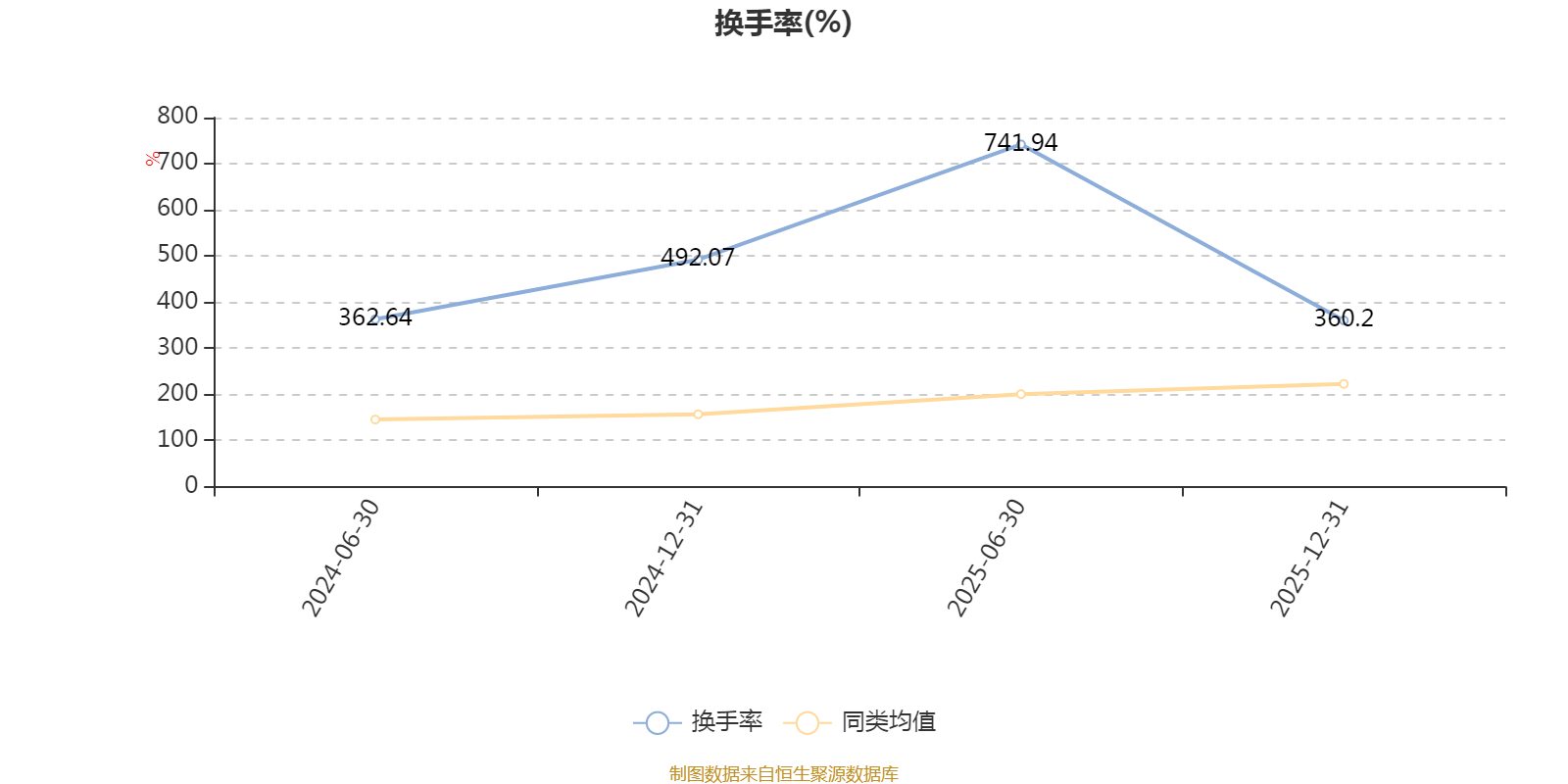 截至2025年12月31日,基金最近一年换手率约1223.34%,持续高于同类均值。