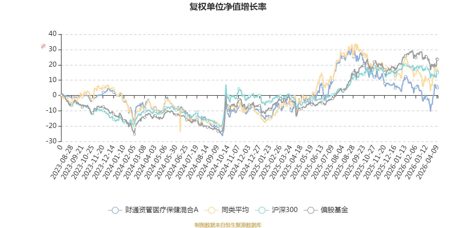 截至4月9日,财通资管医疗保健混合A近三个月复权单位净值增长率为-6.09%,位于同类可比基金51/106;近半年复权单位净值增长率为-10.45%,位于同类可比基金64/106;近一年复权单位净值增长率为19.01%,位于同类可比基金74/104。