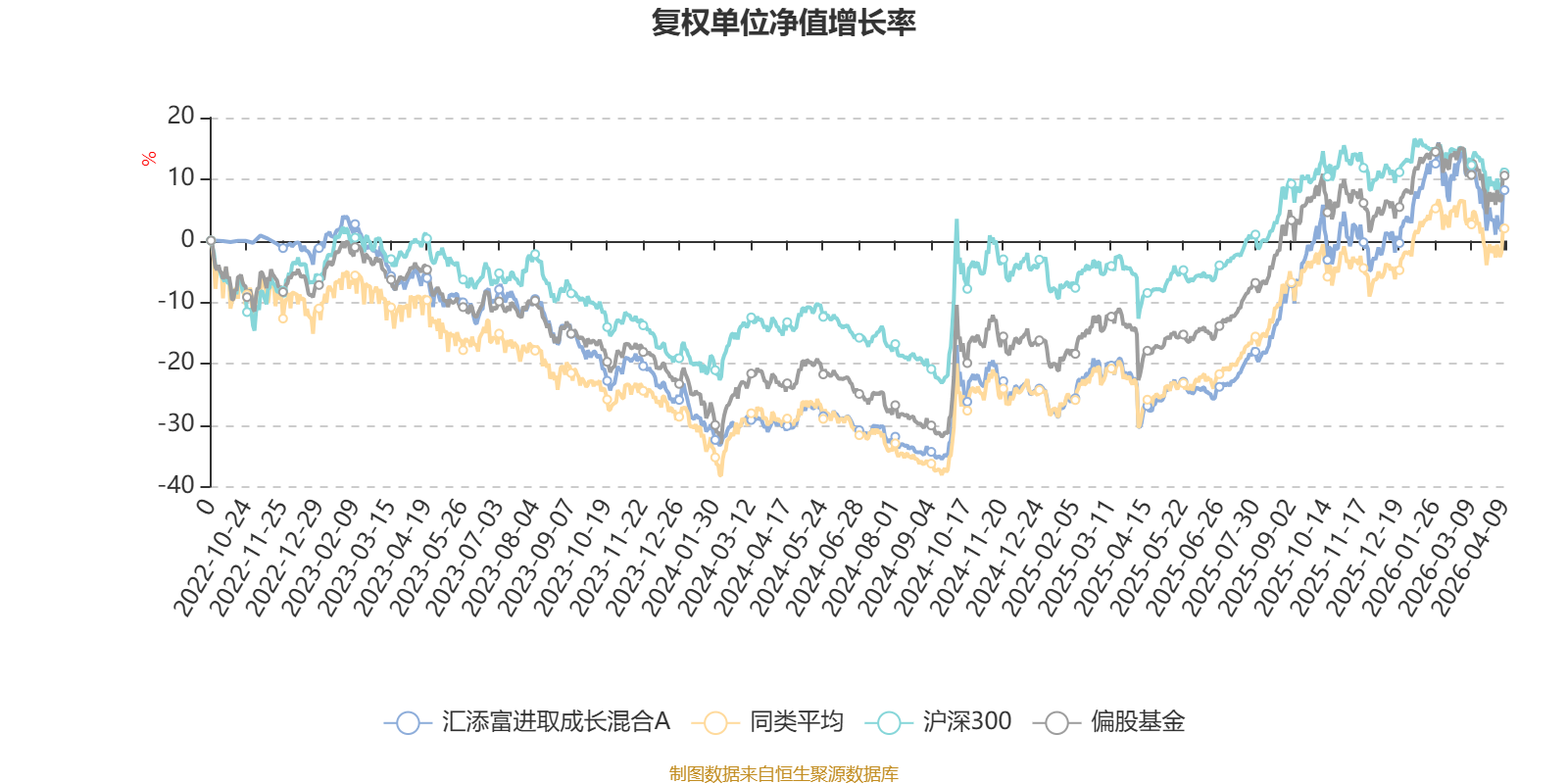 截至4月9日,汇添富进取成长混合A近三个月复权单位净值增长率为0.26%,位于同类可比基金265/621;近半年复权单位净值增长率为2.24%,位于同类可比基金276/621;近一年复权单位净值增长率为54.06%,位于同类可比基金178/618;近三年复权单位净值增长率为13.44%,位于同类可比基金284/559。