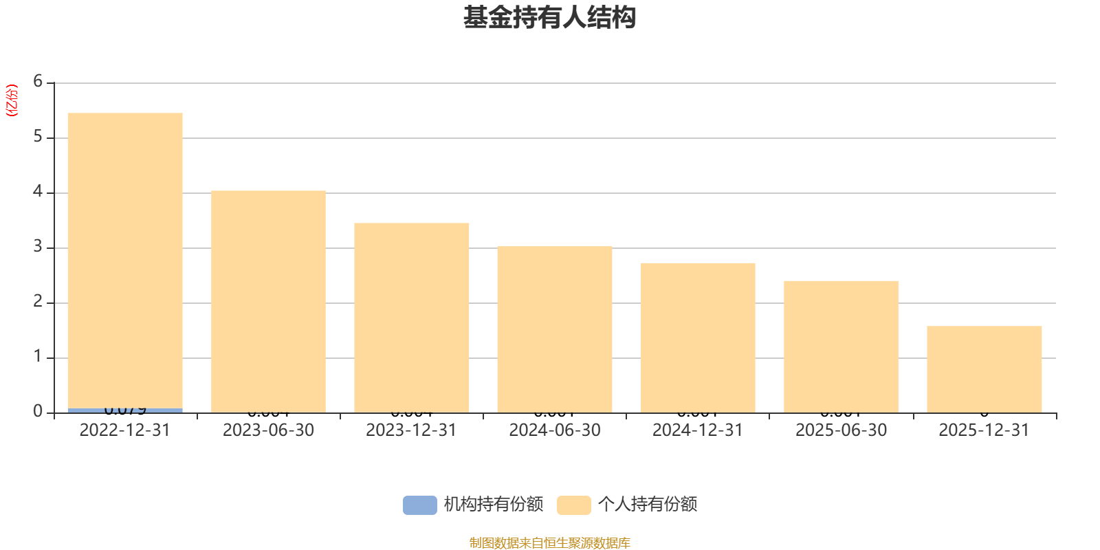 截至2025年12月31日,基金持有人共计3007户,合计持有1.57亿份。其中管理人员工持有5.78万份,占比0.04%,机构持有份额占比0.00%,个人投资者占比100.00%。