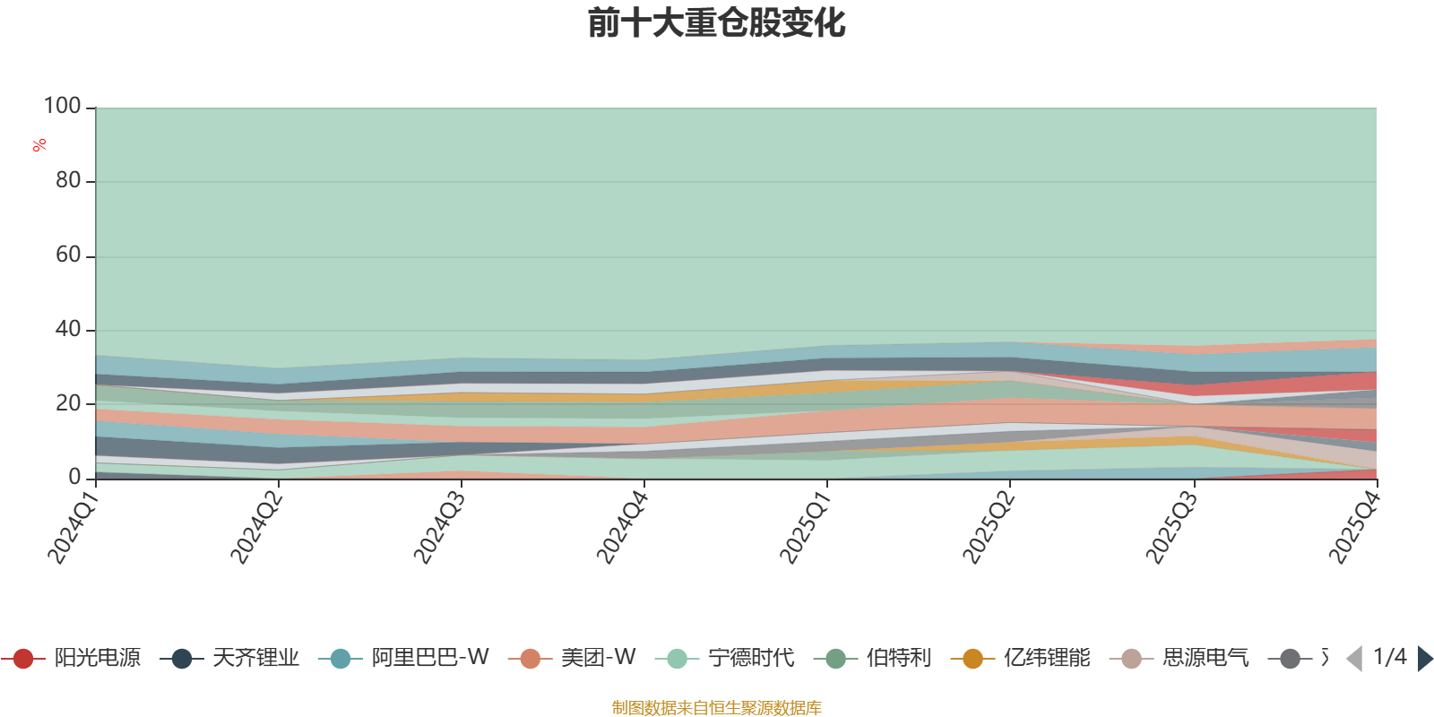 截至2025年末,基金十大重仓股分别是紫金矿业、腾讯控股、思源电气、中际旭创、新易盛、科士达、阳光电源、应流股份、北方华创、海光信息。