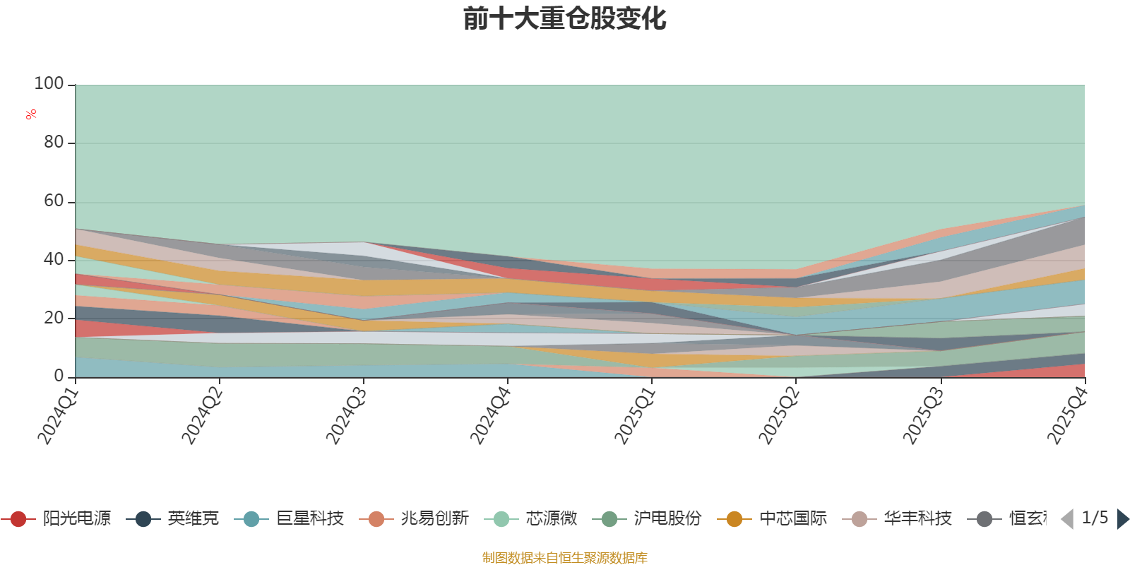 截至2025年末,基金十大重仓股分别是中际旭创、新易盛、生益科技、沪电股份、深南电路、阳光电源、应流股份、中材科技、北方华创、英维克。