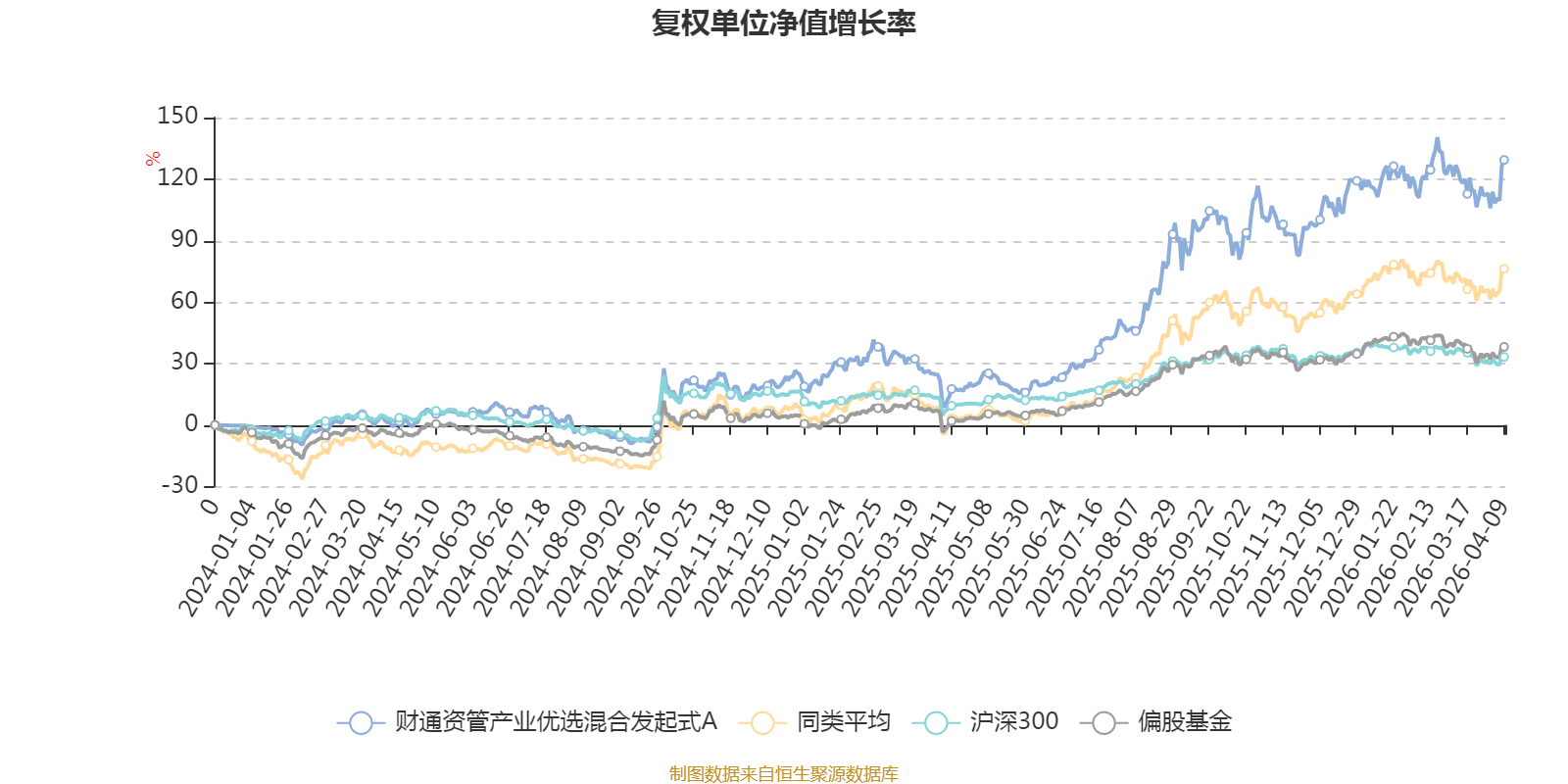 截至4月9日,财通资管产业优选混合发起式A近三个月复权单位净值增长率为6.20%,位于同类可比基金66/229;近半年复权单位净值增长率为13.99%,位于同类可比基金63/229;近一年复权单位净值增长率为105.06%,位于同类可比基金56/229。