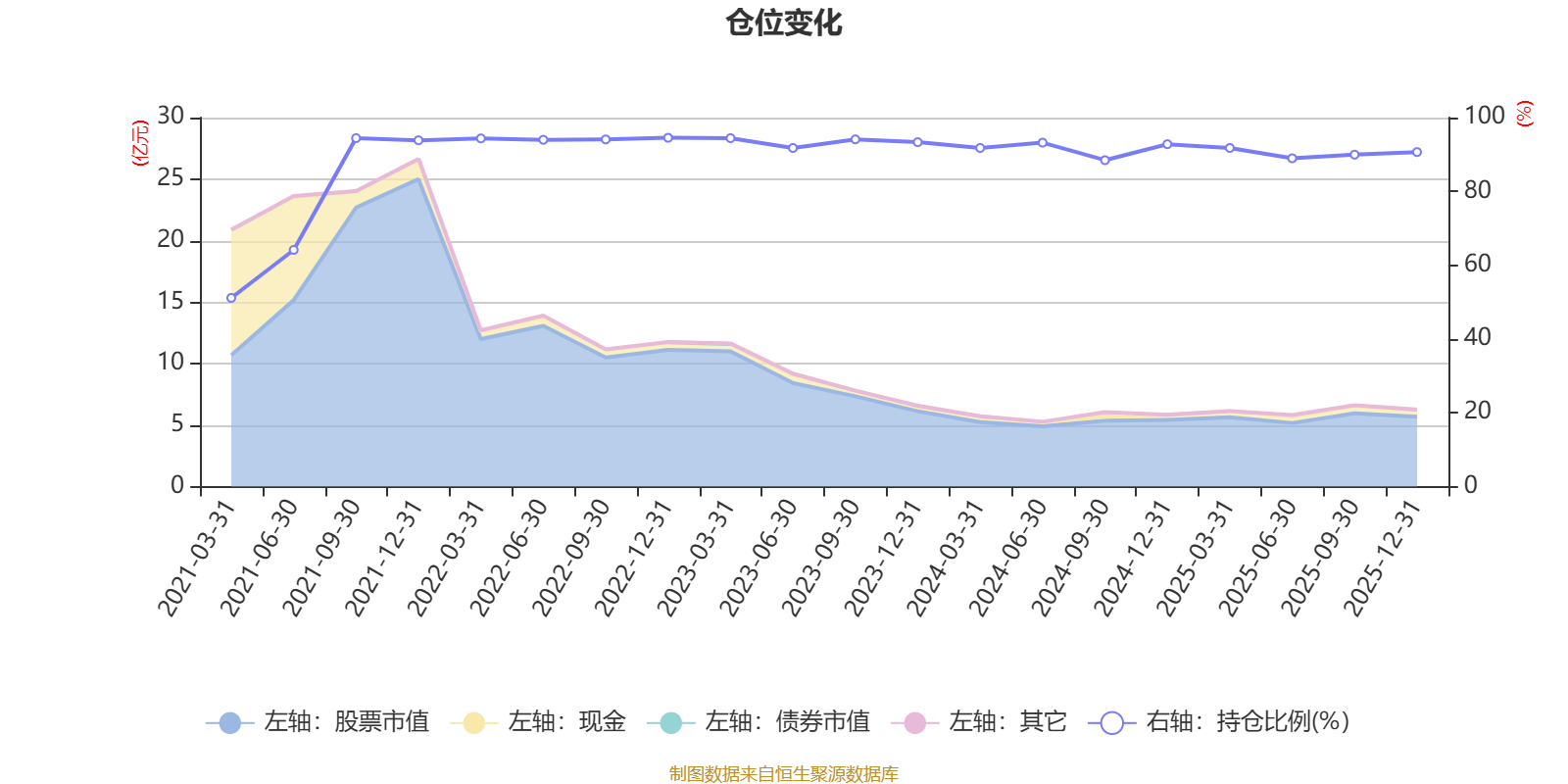 据定期报告数据统计,近三年平均股票仓位为91.77%,同类平均为86.12%。2022年末基金达到94.53%的最高仓位,2021年一季度末最低,为51.14%。