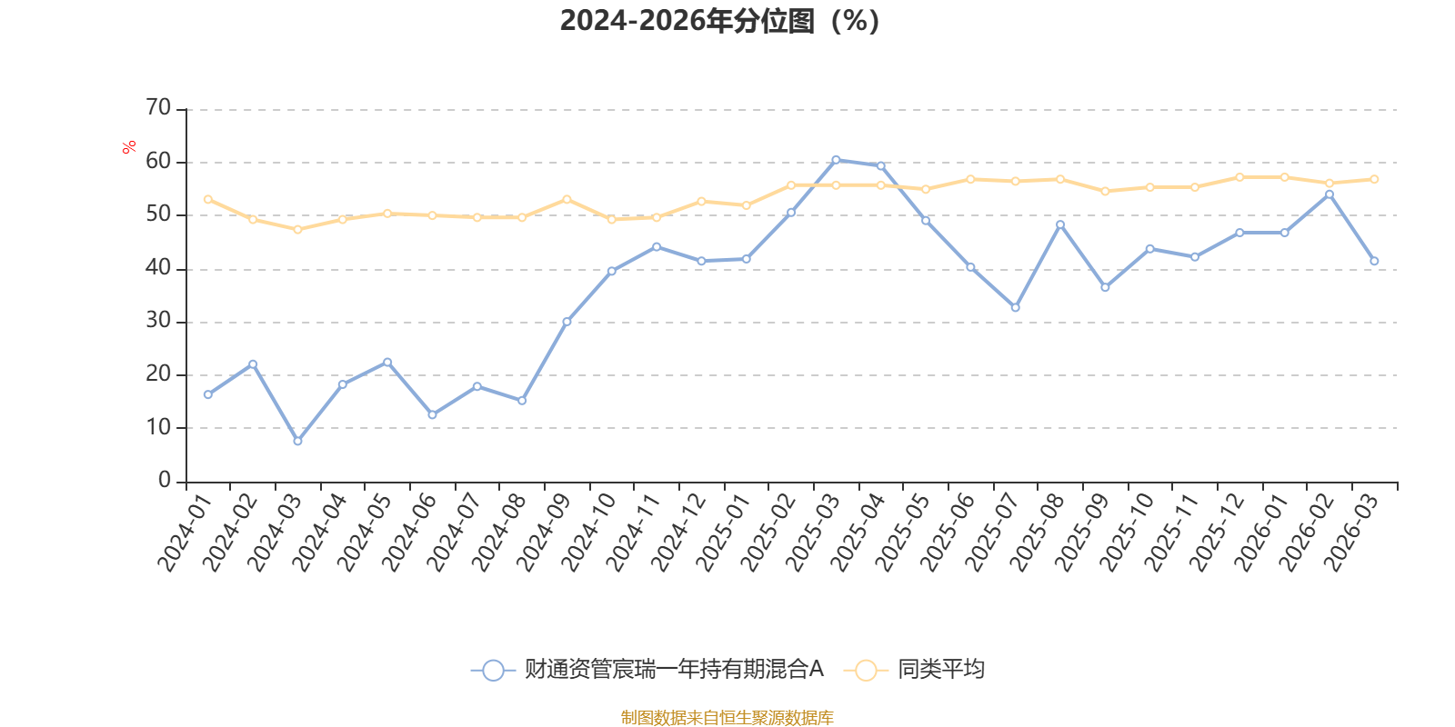 通过所选区间该基金净值增长率分位图,可以观察该基金与同类基金业绩比较情况。图为坐标原点到区间内某时点的净值增长率在同类基金中的分位数。