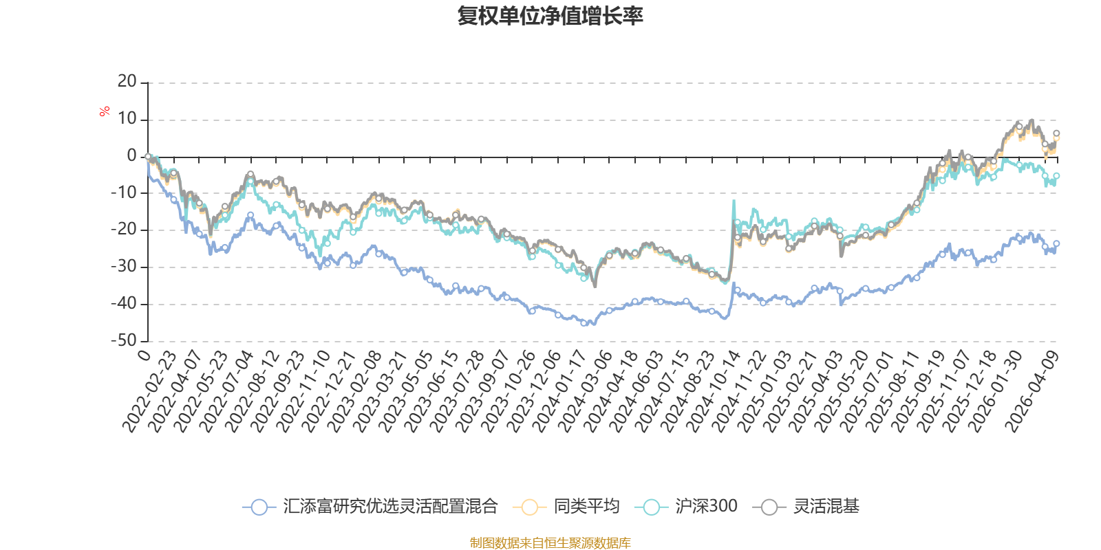 截至4月9日,汇添富研究优选灵活配置混合近三个月复权单位净值增长率为0.69%,位于同类可比基金469/1287;近半年复权单位净值增长率为-0.24%,位于同类可比基金819/1286;近一年复权单位净值增长率为26.28%,位于同类可比基金742/1286;近三年复权单位净值增长率为9.84%,位于同类可比基金731/1286。