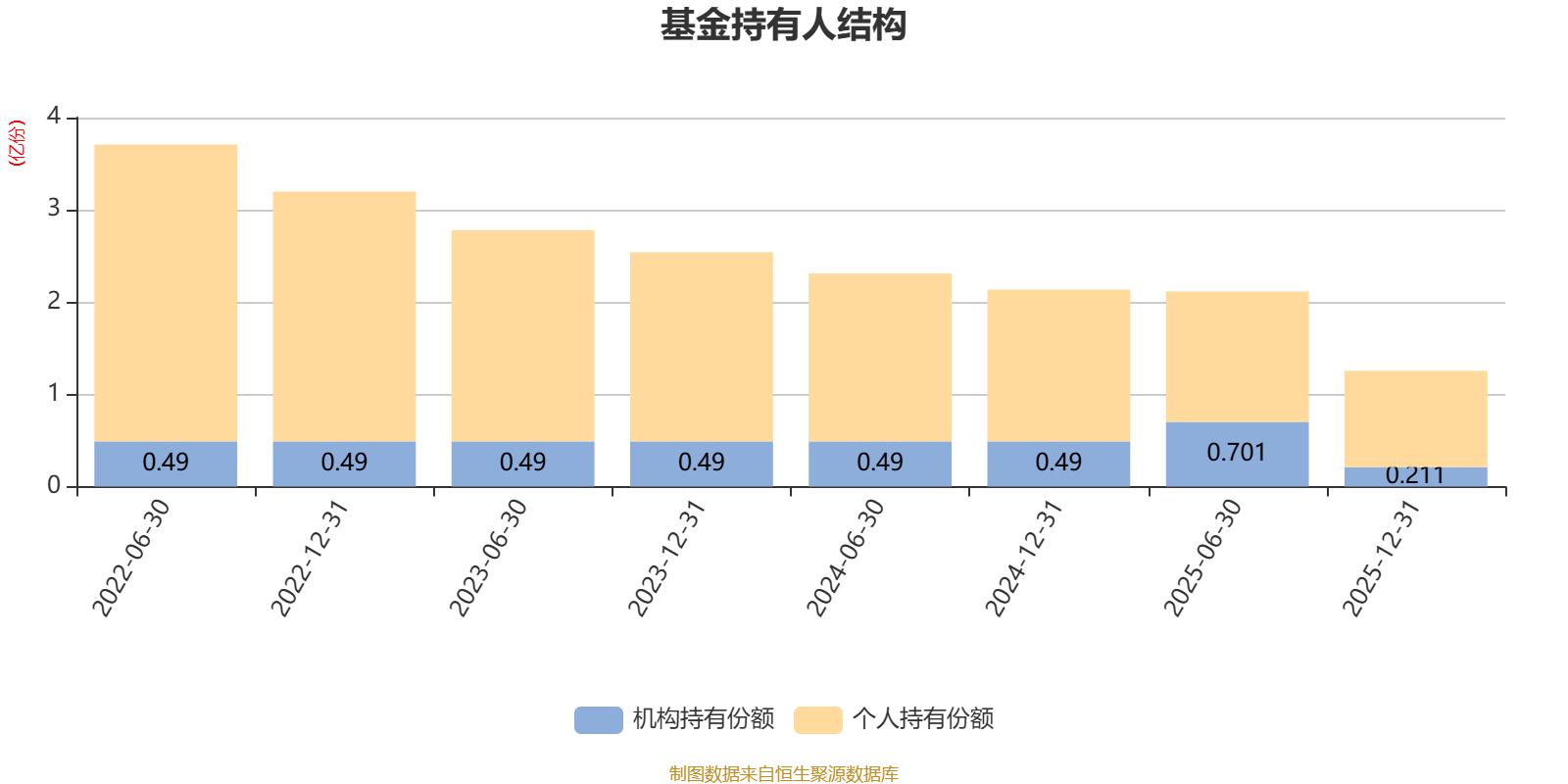 截至2025年12月31日,基金持有人共计2262户,合计持有1.25亿份。其中管理人员工持有201万份,占比1.60%,机构持有份额占比16.84%,个人投资者占比83.16%。