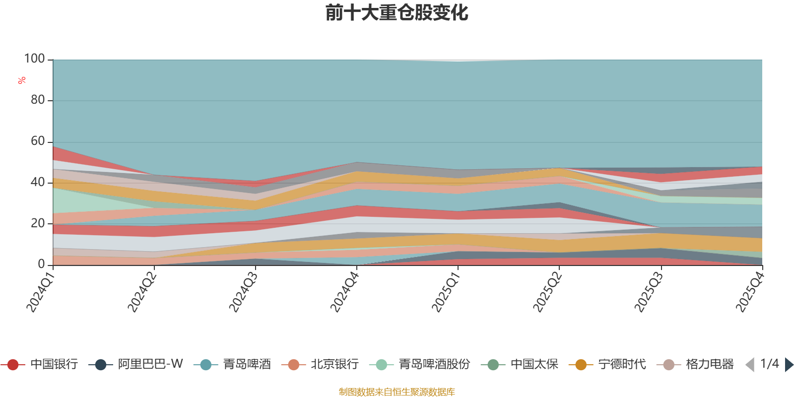 截至2025年末,基金十大重仓股分别是腾讯控股、宁德时代、中国平安、立讯精密、紫金矿业、恒瑞医药、阿里巴巴-W、贵州茅台、上海银行、中国太保。
