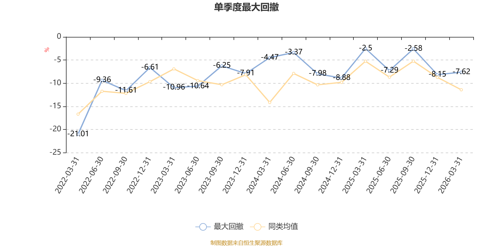 截至4月9日,基金近三年最大回撤为22.32%,同类可比基金排名344/1264。单季度最大回撤出现在2022年一季度,为21.01%。