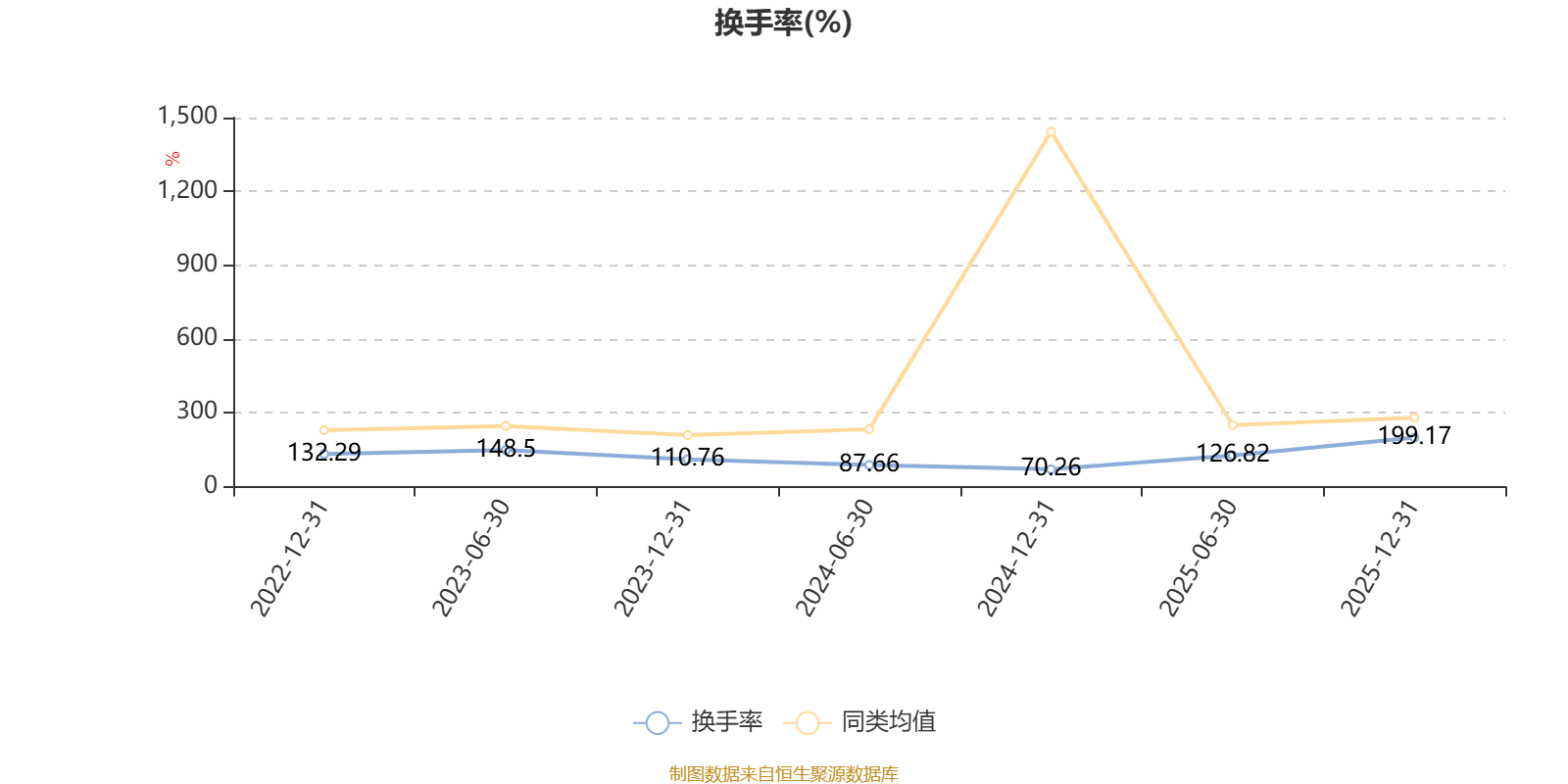 截至2025年12月31日,基金最近一年换手率约325.77%,持续低于同类均值。