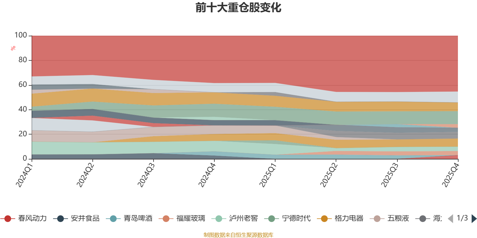 该基金持股集中度较高。截至2025年末,基金十大重仓股分别是美的集团、海尔智家、贵州茅台、格力电器、海大集团、泸州老窖、福耀玻璃、东鹏饮料、安克创新、春风动力。