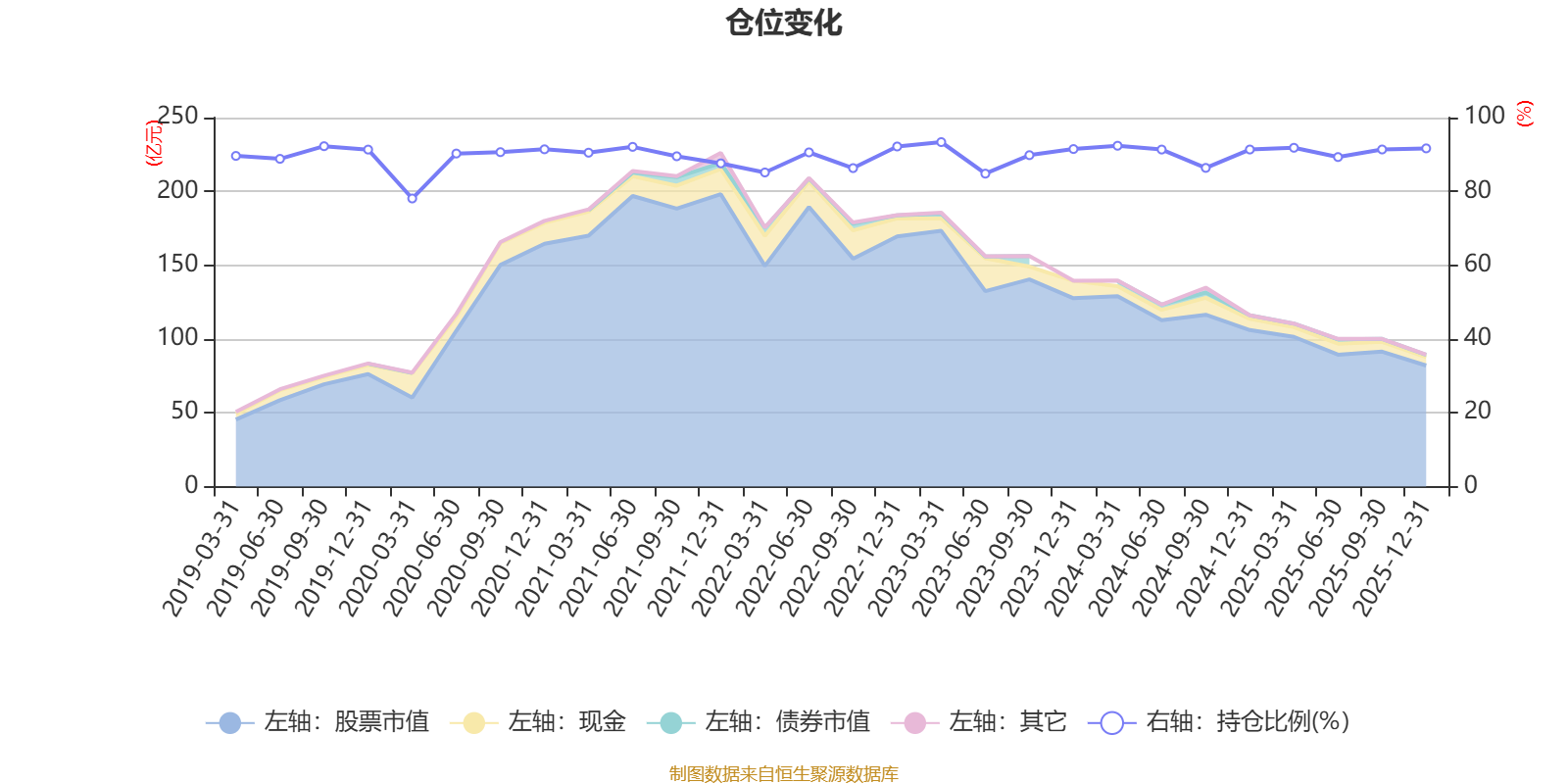 据定期报告数据统计,近三年平均股票仓位为90.42%,同类平均为87.26%。2023年一季度末基金达到93.36%的最高仓位,2020年一季度末最低,为78.08%。