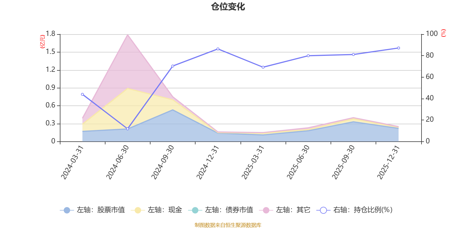 据定期报告数据统计,成立以来平均股票仓位为66.23%,同类平均为86.7%。2025年末基金达到87.15%的最高仓位,2024年上半年末最低,为11.82%。