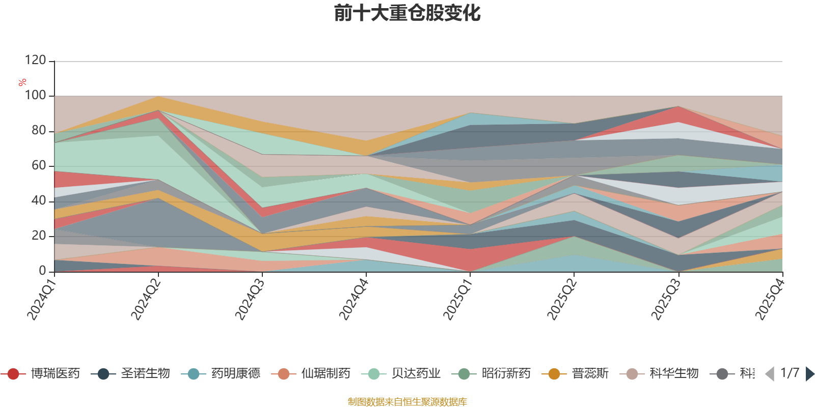 该基金持股集中度较高,近2年前十大重仓股集中度长期超过60%。截至2025年末,基金十大重仓股分别是特宝生物、普洛药业、热景生物、信立泰、泰格医药、百利天恒、昭衍新药、百济神州、普蕊斯、康龙化成。