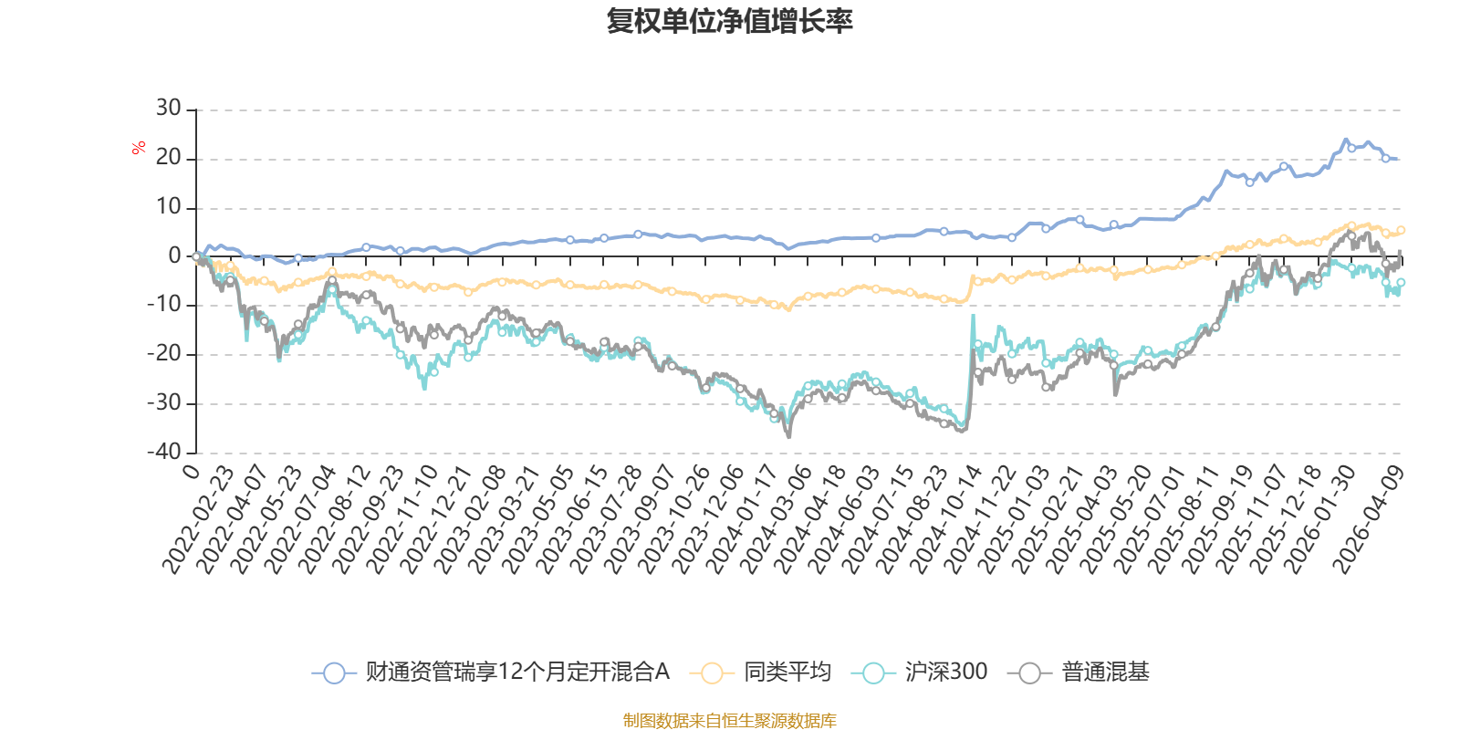 截至4月3日,财通资管瑞享12个月定开混合A近三个月复权单位净值增长率为1.67%,位于同类可比基金85/629;近半年复权单位净值增长率为2.72%,位于同类可比基金134/629;近一年复权单位净值增长率为12.52%,位于同类可比基金114/629;近三年复权单位净值增长率为16.17%,位于同类可比基金129/581。