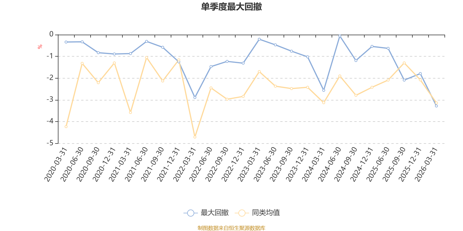 截至4月3日,基金近三年最大回撤为3.36%,同类可比基金排名77/548。单季度最大回撤出现在2026年一季度,为3.28%。