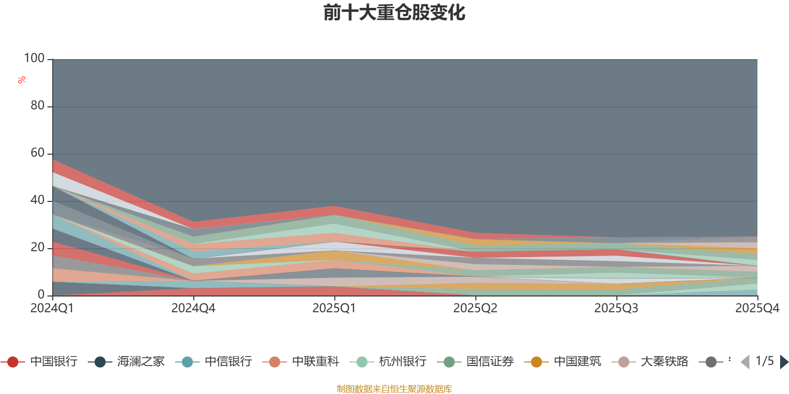 截至2025年末,基金十大重仓股分别是中国石化、中信银行、招商银行、中国神华、中国移动、杭州银行、国信证券、上海银行、华夏银行、伊利股份。