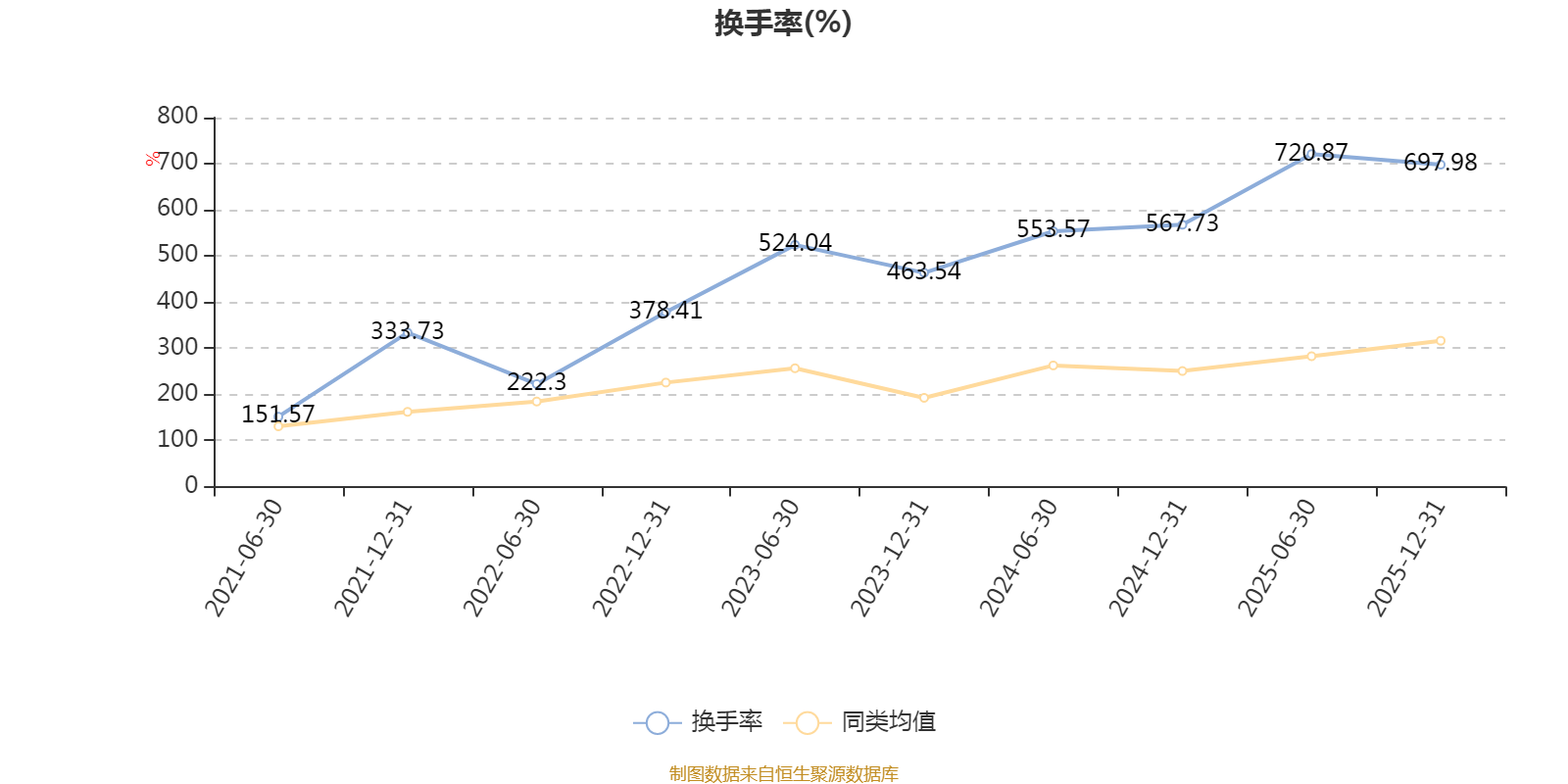 截至2025年12月31日,基金最近一年换手率约1424.1%,持续高于同类均值。
