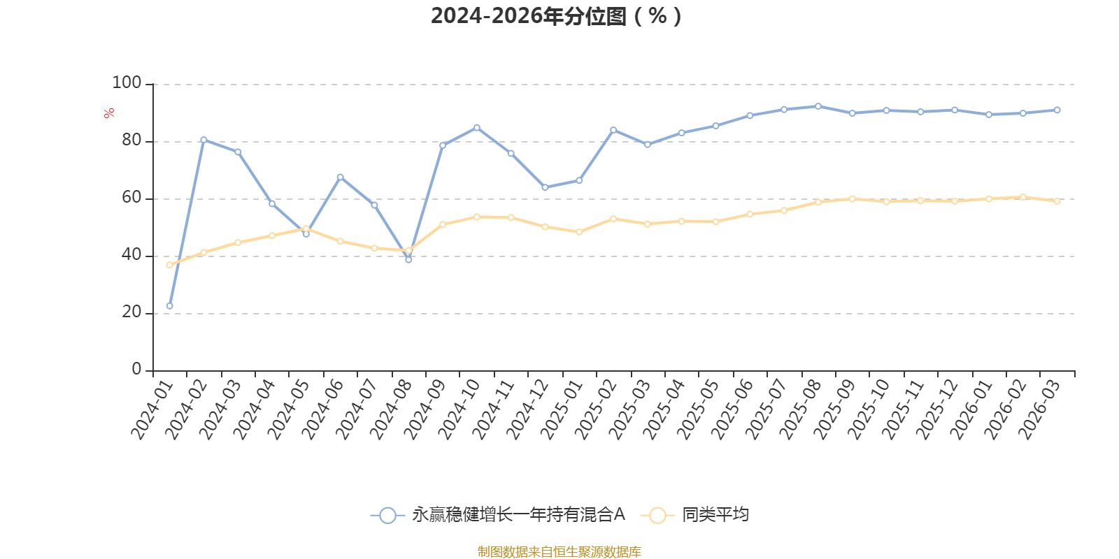 通过所选区间该基金净值增长率分位图,可以观察该基金与同类基金业绩比较情况。图为坐标原点到区间内某时点的净值增长率在同类基金中的分位数。