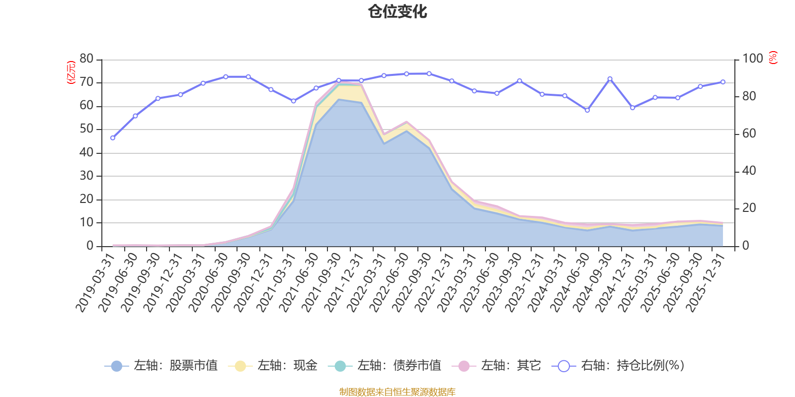 据定期报告数据统计,近三年平均股票仓位为82.13%,同类平均为85.83%。2022年三季度末基金达到92.47%的最高仓位,2019年一季度末最低,为58.09%。