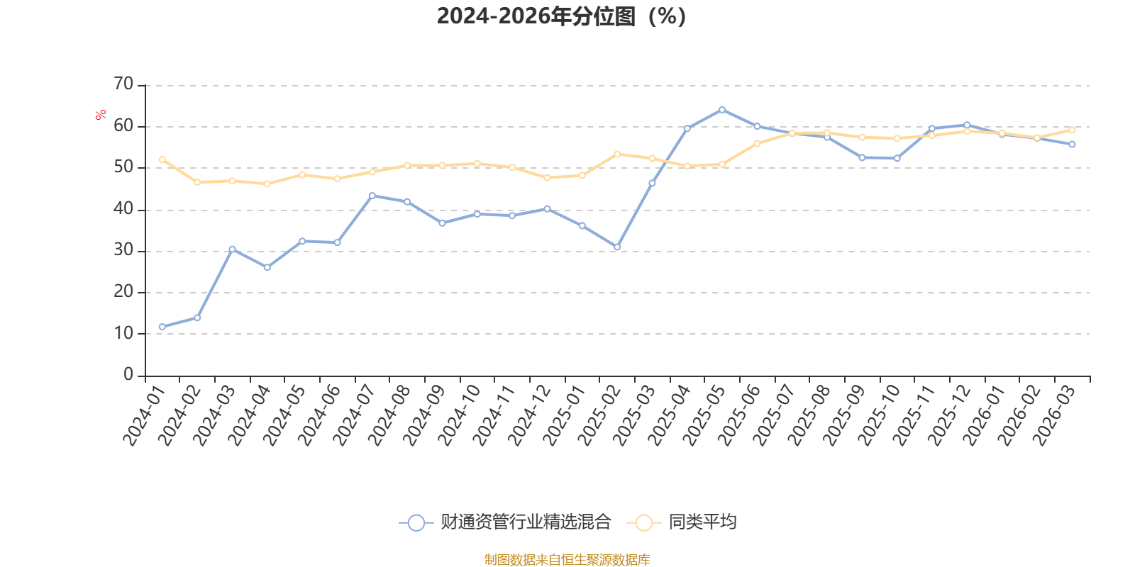 通过所选区间该基金净值增长率分位图,可以观察该基金与同类基金业绩比较情况。图为坐标原点到区间内某时点的净值增长率在同类基金中的分位数。