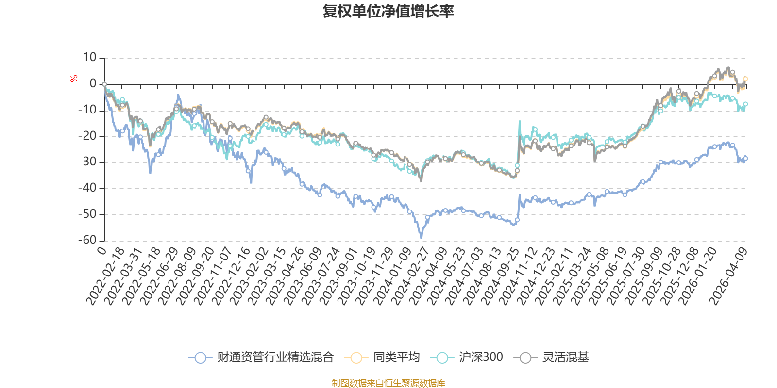 截至4月9日,财通资管行业精选混合近三个月复权单位净值增长率为-5.51%,位于同类可比基金1034/1287;近半年复权单位净值增长率为1.45%,位于同类可比基金669/1286;近一年复权单位净值增长率为29.40%,位于同类可比基金672/1286;近三年复权单位净值增长率为8.43%,位于同类可比基金762/1286。