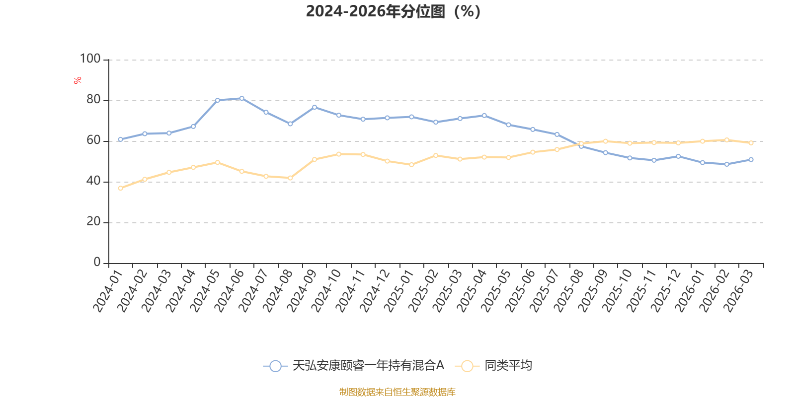 通过所选区间该基金净值增长率分位图,可以观察该基金与同类基金业绩比较情况。图为坐标原点到区间内某时点的净值增长率在同类基金中的分位数。