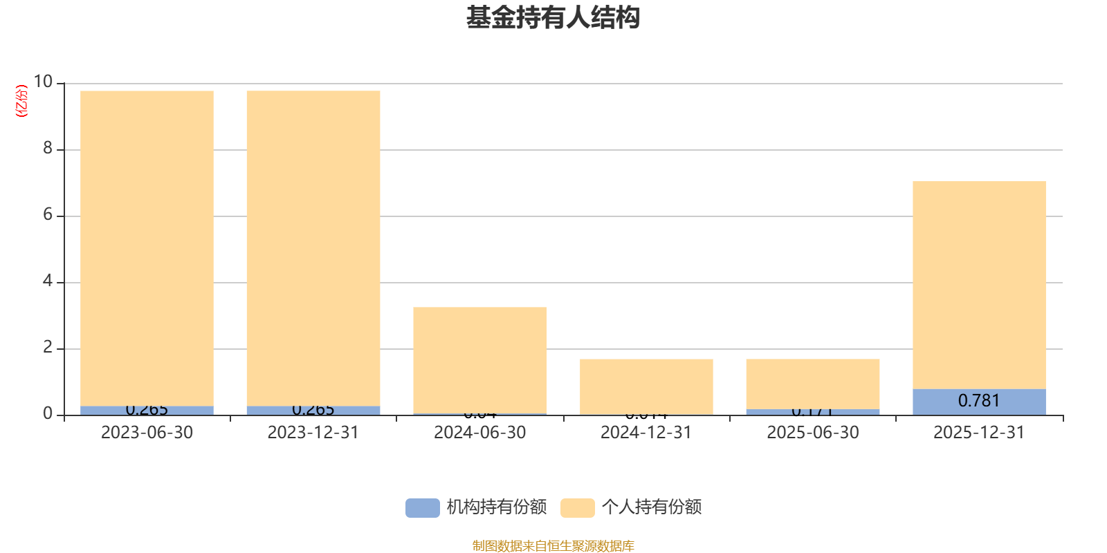 截至2025年12月31日,基金持有人共计4257户,合计持有7.04亿份。其中管理人员工持有24.05万份,占比0.03%,机构持有份额占比11.10%,个人投资者占比88.90%。