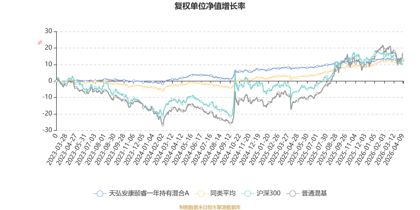 截至4月9日,天弘安康颐睿一年持有混合A近三个月复权单位净值增长率为-0.69%,位于同类可比基金470/629;近半年复权单位净值增长率为-0.07%,位于同类可比基金458/629;近一年复权单位净值增长率为4.19%,位于同类可比基金496/629;近三年复权单位净值增长率为11.30%,位于同类可比基金272/581。