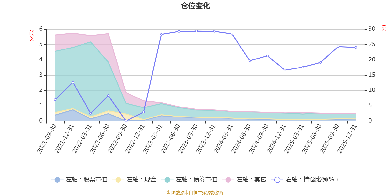 据定期报告数据统计,近三年平均股票仓位为23.96%,同类平均为19.2%。2023年三季度末基金达到29.39%的最高仓位,2022年三季度末最低,为0.02%。
