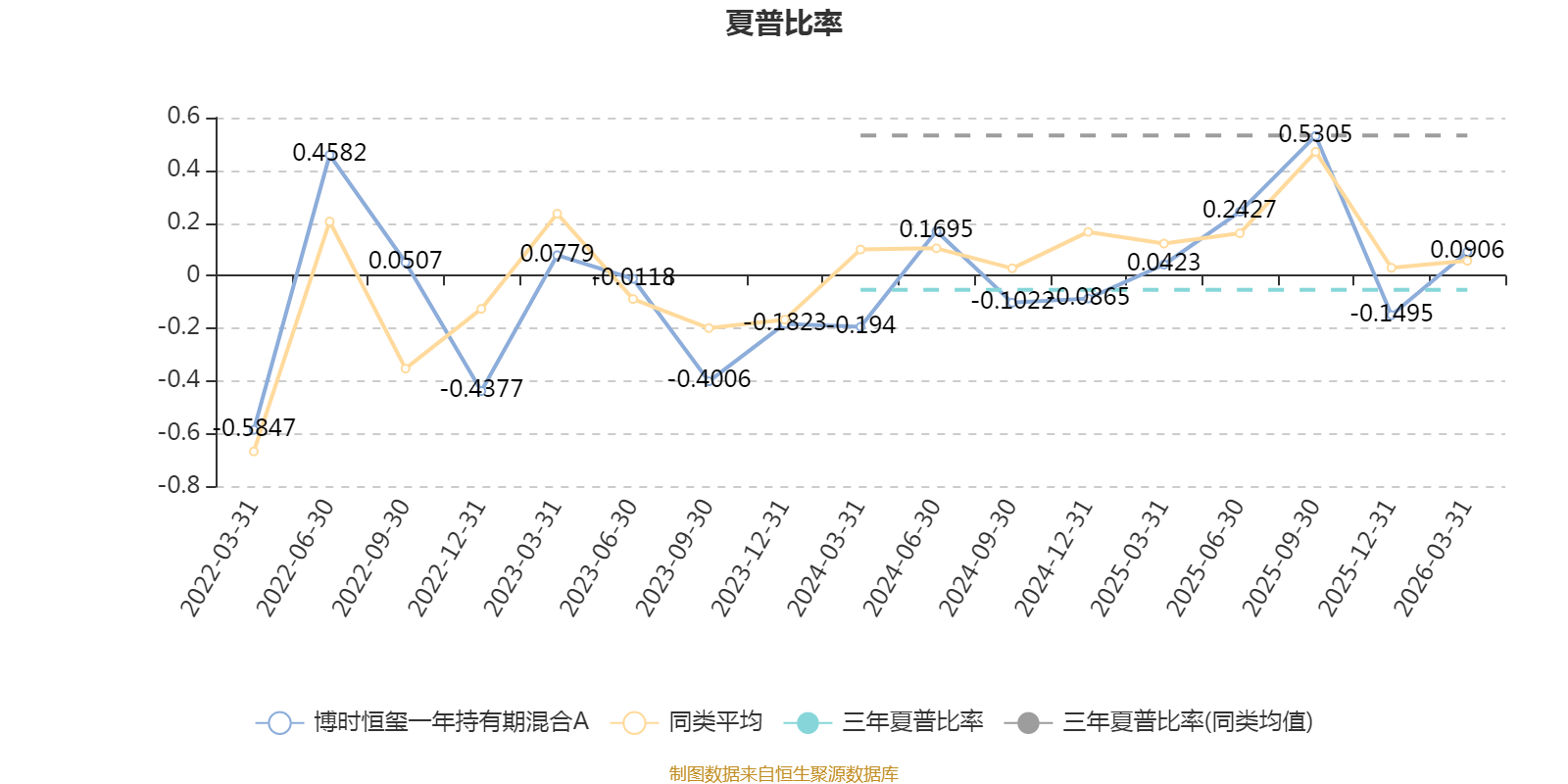 截至3月31日,基金近三年夏普比率为-0.0536,位于同类可比基金499/550。