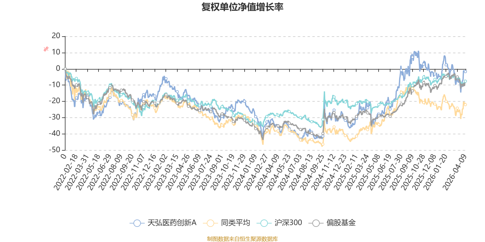 截至4月9日,天弘医药创新A近三个月复权单位净值增长率为-6.09%,位于同类可比基金48/106;近半年复权单位净值增长率为-11.10%,位于同类可比基金75/106;近一年复权单位净值增长率为52.35%,位于同类可比基金8/104;近三年复权单位净值增长率为16.17%,位于同类可比基金16/78。