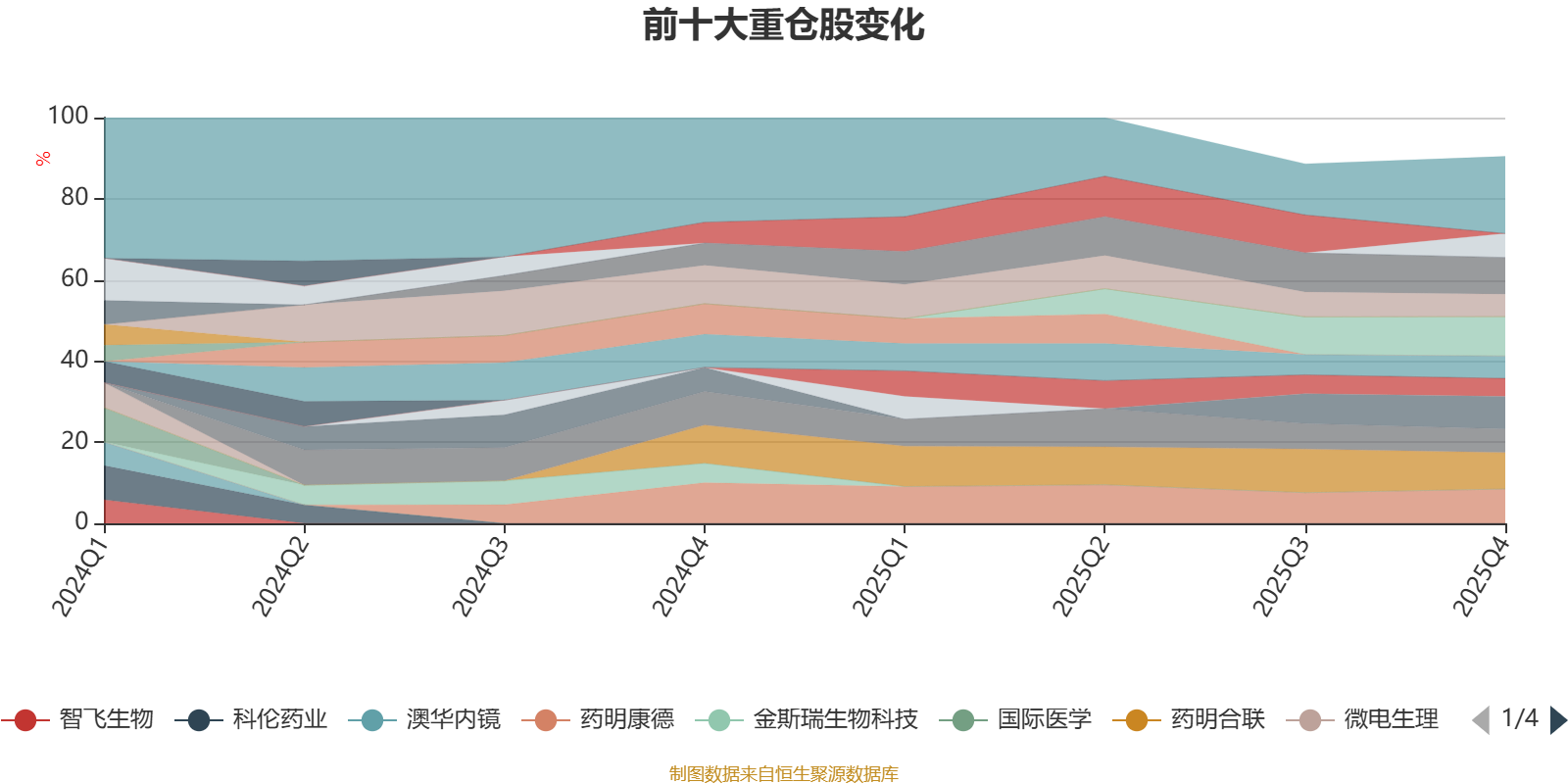 基金管理人在年报中表示,从政策、行业演进以及新需求的角度上展望2026年及十五五期间的医药主线。政策端十五五规划中提到了脑机接口和生物制造等相关方向,尽管目前尚未出现较为成熟的产品和盈利模式,但在国家整体政策的推进过程中行业支持和投融资放宽是必然的方向,2026年有望看到一些相关产品和服务模式的商业化,是可以长期关注的方向。行业和新需求方面,全球医药生物投融资的复苏所带来的行业景气依然是重点持仓,同时在新治疗手段如小核酸、分子胶、手术机器人等初露端倪的方向上也将产生新的投资机会。与此同时,紧密跟踪国内宏观形式的变化情况,对于已经承压多年的医疗消费板块来说,有望在今明两年看到边际转暖的击球点。