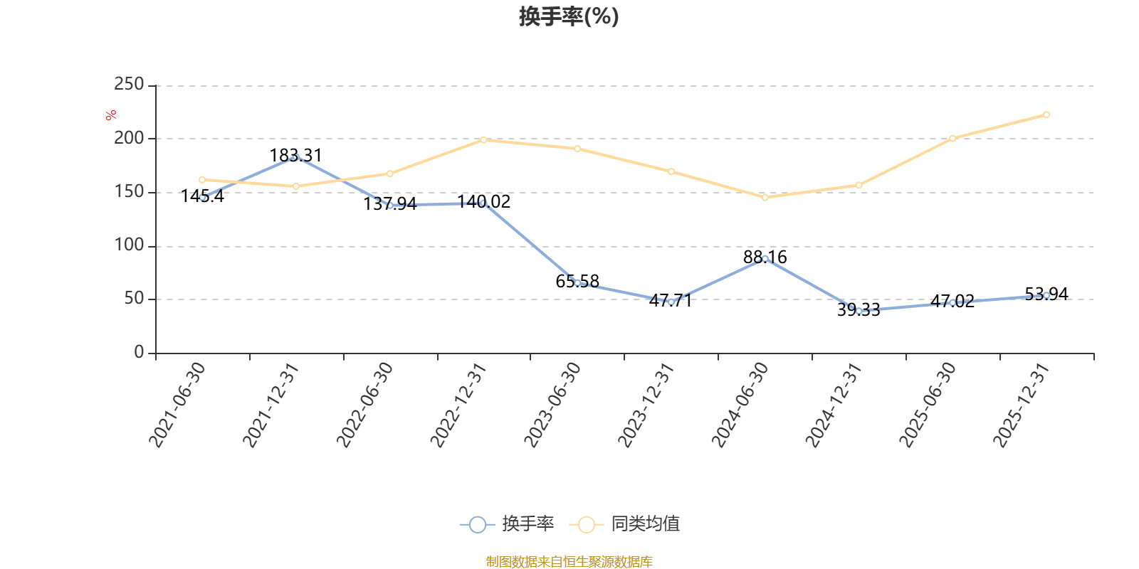 截至2025年12月31日,基金最近一年换手率约99.29%,持续4年低于同类均值。