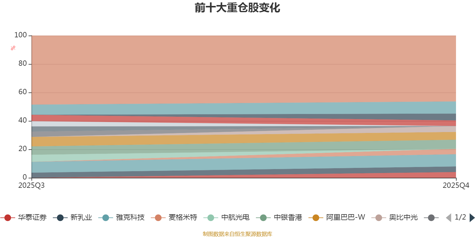 该基金持股集中度较高。截至2025年末,基金十大重仓股分别是雅克科技、徐工机械、中银香港、阿里巴巴-W、天山铝业、奥比中光、华泰证券、中芯国际、新乳业、麦格米特。