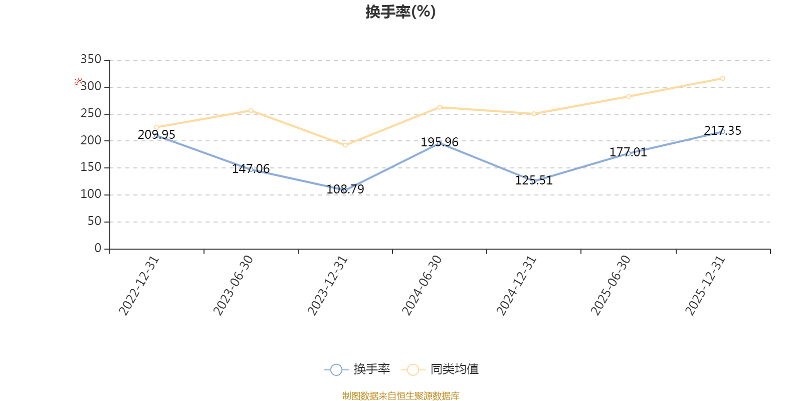 截至2025年12月31日,基金最近一年换手率约380.53%,持续低于同类均值。