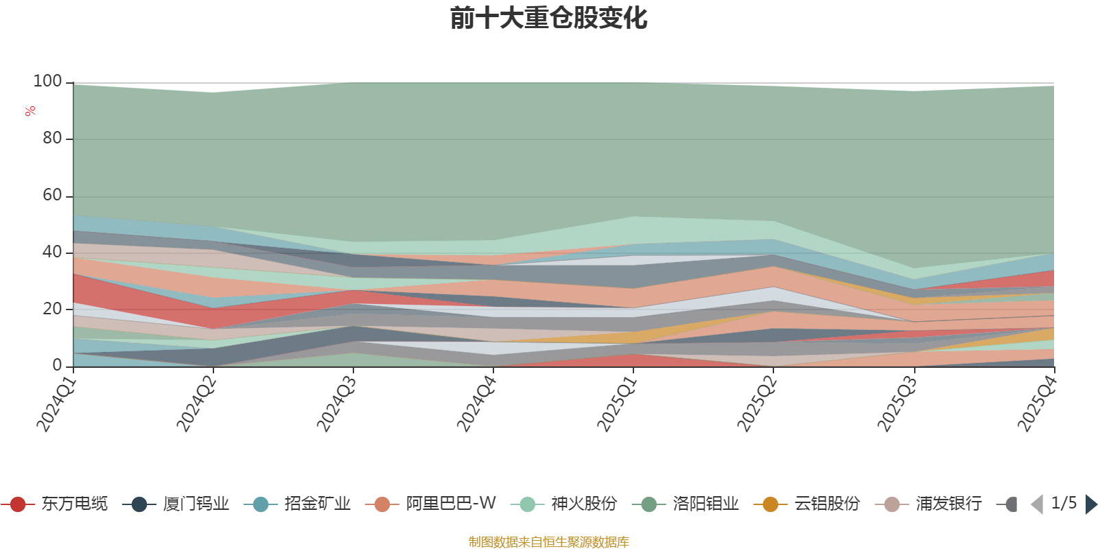 截至2025年末,基金十大重仓股分别是紫金矿业、上海银行、腾讯控股、华泰证券、云铝股份、阿里巴巴-W、神火股份、厦门钨业、珠江股份、云天化。