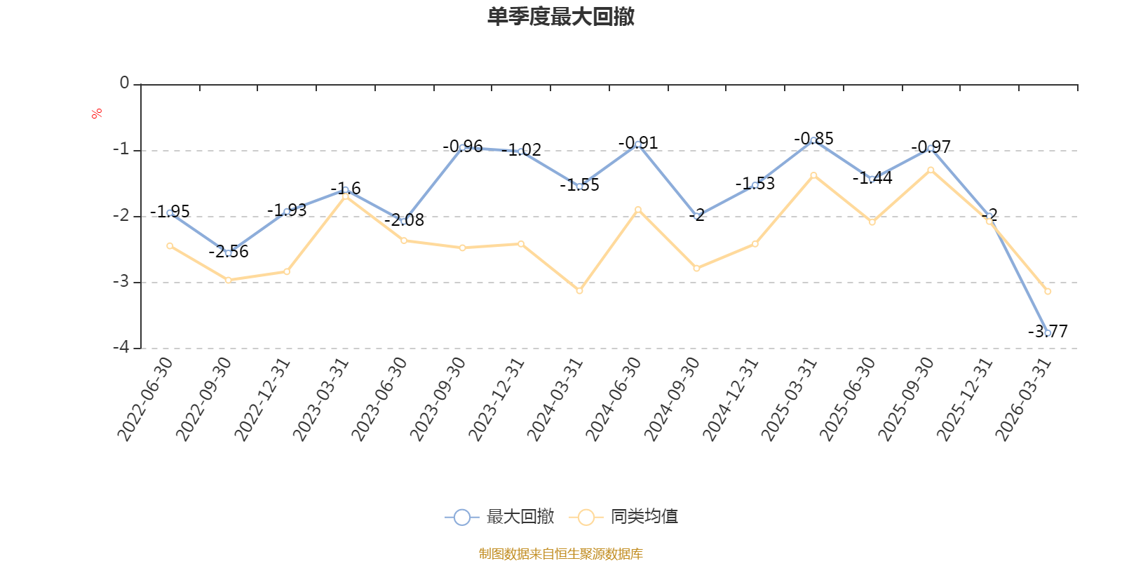 截至4月9日,基金近三年最大回撤为3.88%,同类可比基金排名116/534。单季度最大回撤出现在2026年一季度,为3.77%。