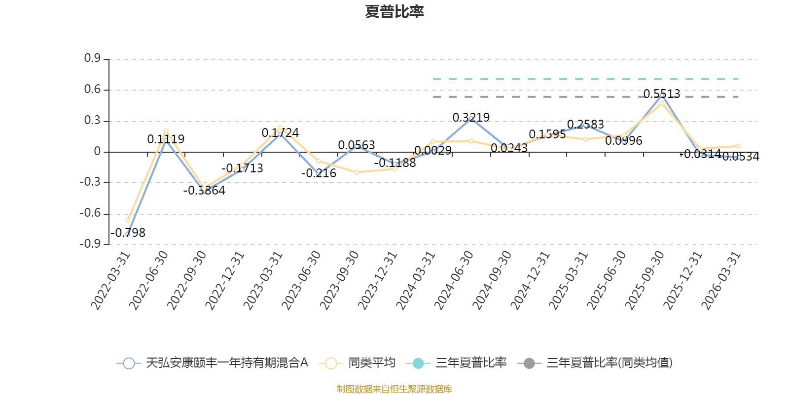 截至3月31日,基金近三年夏普比率为0.7077,位于同类可比基金194/550。